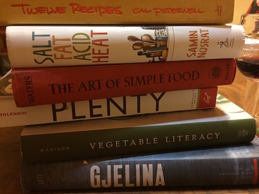Recipes are one way to figure out your way around the challenge of getting dinner on the table — whether handed down as a family heirloom, borrowed from the internet, or found in a cookbook, the best ones are pearls of wisdom practiced over and over by the author until the kinks have been worked out. I have somehow collected an extensive library of cookbooks. Many of them are beautiful books, full of evocative photos of people, ingredients, places and feasts. Others in my library, like several editions of The Joy of Cooking, or The Gourmet Cookbook by Ruth Reichl have no photos, just hundreds of recipes.
