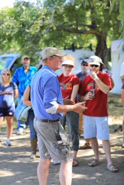 This years contest was won by Andrew of the Peach Jamboree Farm near Oroville. This farmer had his farm burn to the ground in an earlier fire this year. He and his partner were the recipients of special shout out- the proceeds from tips and contributions of hoes downers became a $3000 fundraiser to help rebuild their farm. An indomitable spirit, Andrew had the determination to chow down a big slice of full belly red watermelon faster than the rest. Dru’s watermelon eating contest was innocent competition and delicious speed eating- no time to spit the seeds.