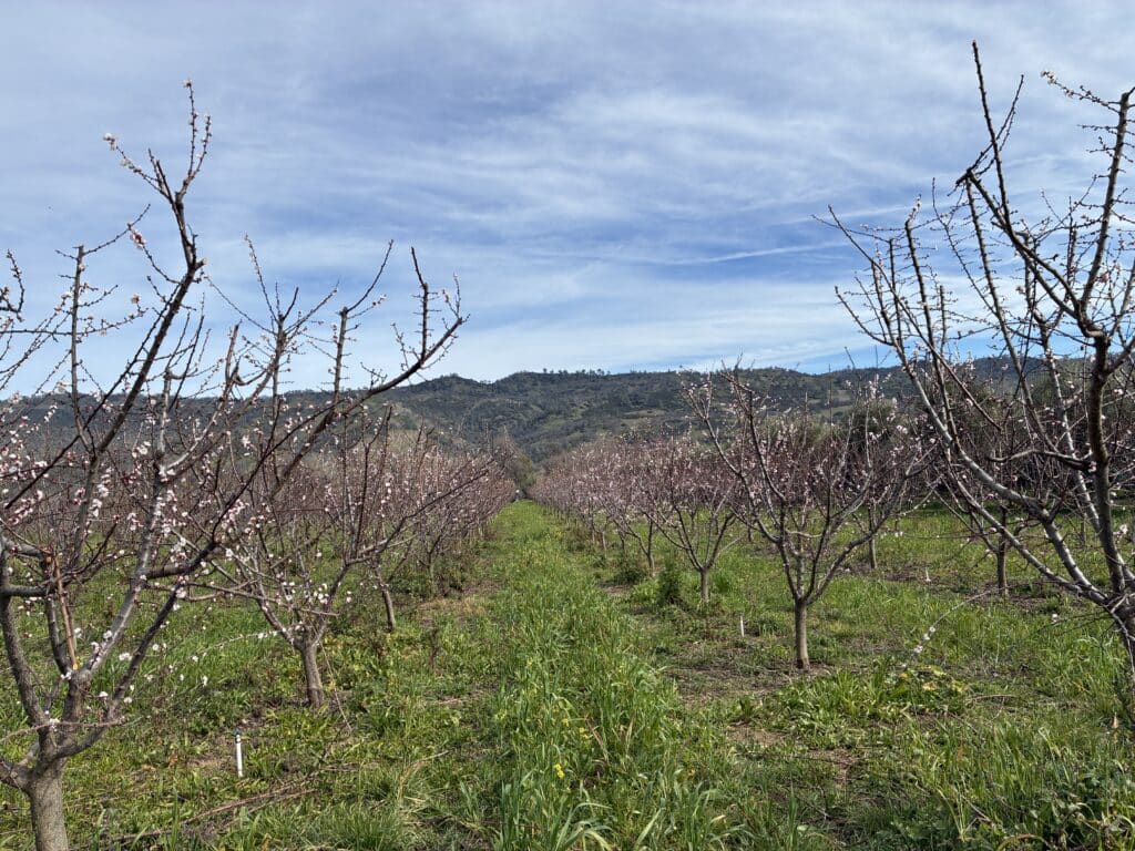 We got a minuscule amount of rain on Tuesday, nothing substantial. The irrigation team has gotten back to setting up and moving irrigation pipes and we’re checking the weather forecast for future precipitation. We need more rain! Meanwhile, the first of the apriums are blooming (in the top photo) and the almonds aren’t far behind. Reminder: join us for the annual Almond Festival on Sunday, February 22. We’ll be in Rumsey with a farmers market stand and we’ll be making food.