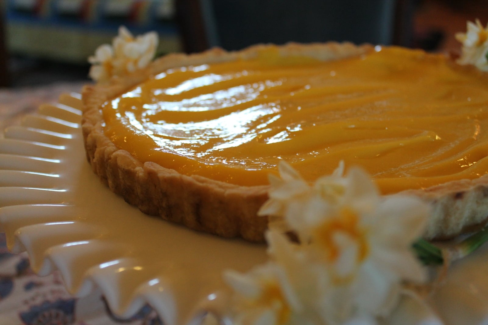 This lovely lemon tart is all class. Tart, sweet and bright. It's so easy to throw together ~ don't be intimidated by the custard part of the recipe! I make my tart shell in a slightly unconventional way, but it has never failed me and you don't have to mess with rolling out cold dough ~ just press it all into the tart shell.