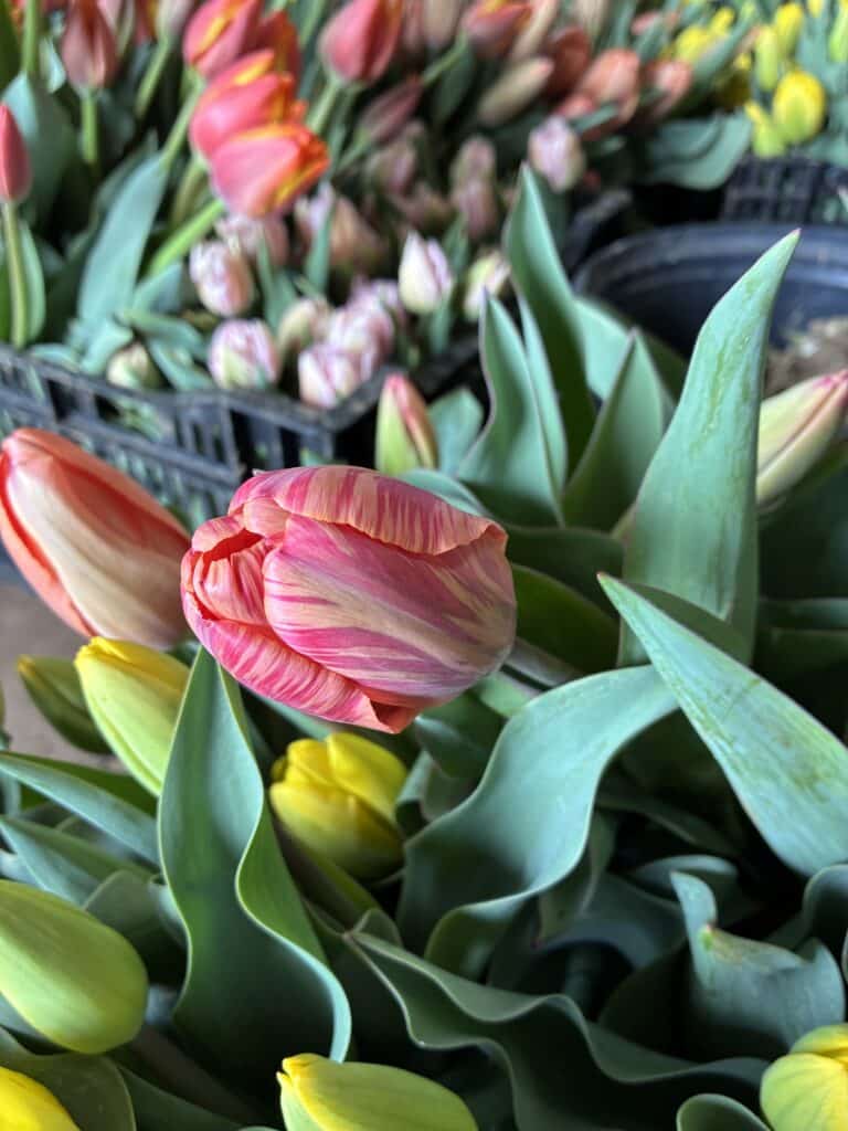 First, the tulips. The tulips were planted in November and now they’re here and are in bloom. And they’re beautiful! Anyone who isn’t getting them is missing out! It’s fascinating to watch them open in a vase over the course of days, or even over a few hours if they’re in a particularly warm or sunny spot.